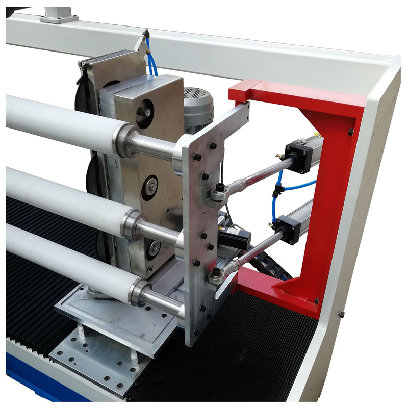 4. 圓刀自動(dòng)角度調(diào)整,使用伺服馬達(dá)計(jì)算圓刀角度轉(zhuǎn)向,因應(yīng)不同材料做不同角度變化